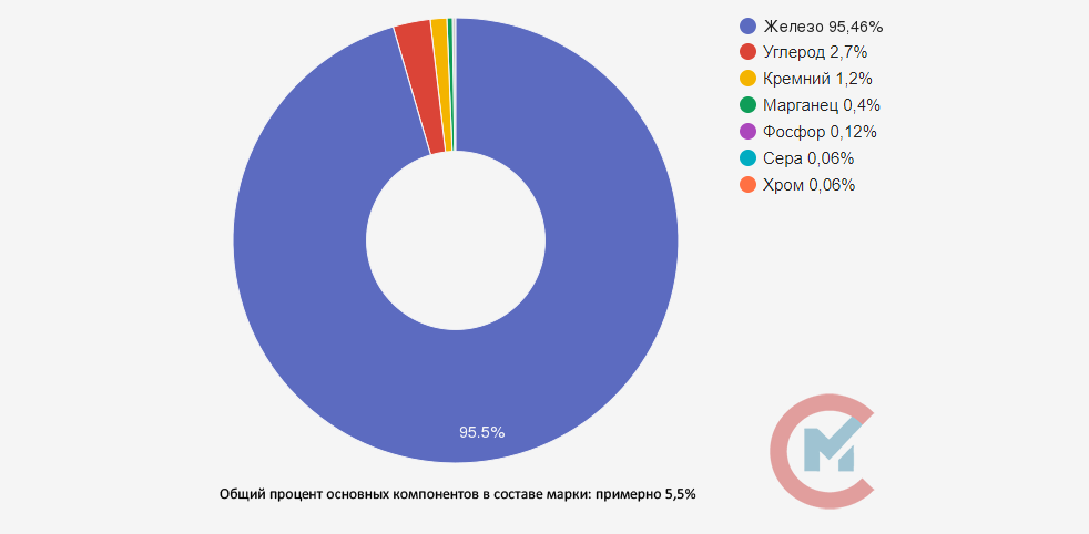 Основой сплава является железо, добавки углерода и кремния повышают и придают чугуну свойства, необходимые для дальнейшей обработки и изготовления деталей. Дополнительные добавки в виде марганца, фосфора, серы и хрома, необходимые для графитизации и придания дополнительной прочности материалу. Возможна дополнительная обработка другими элементами.